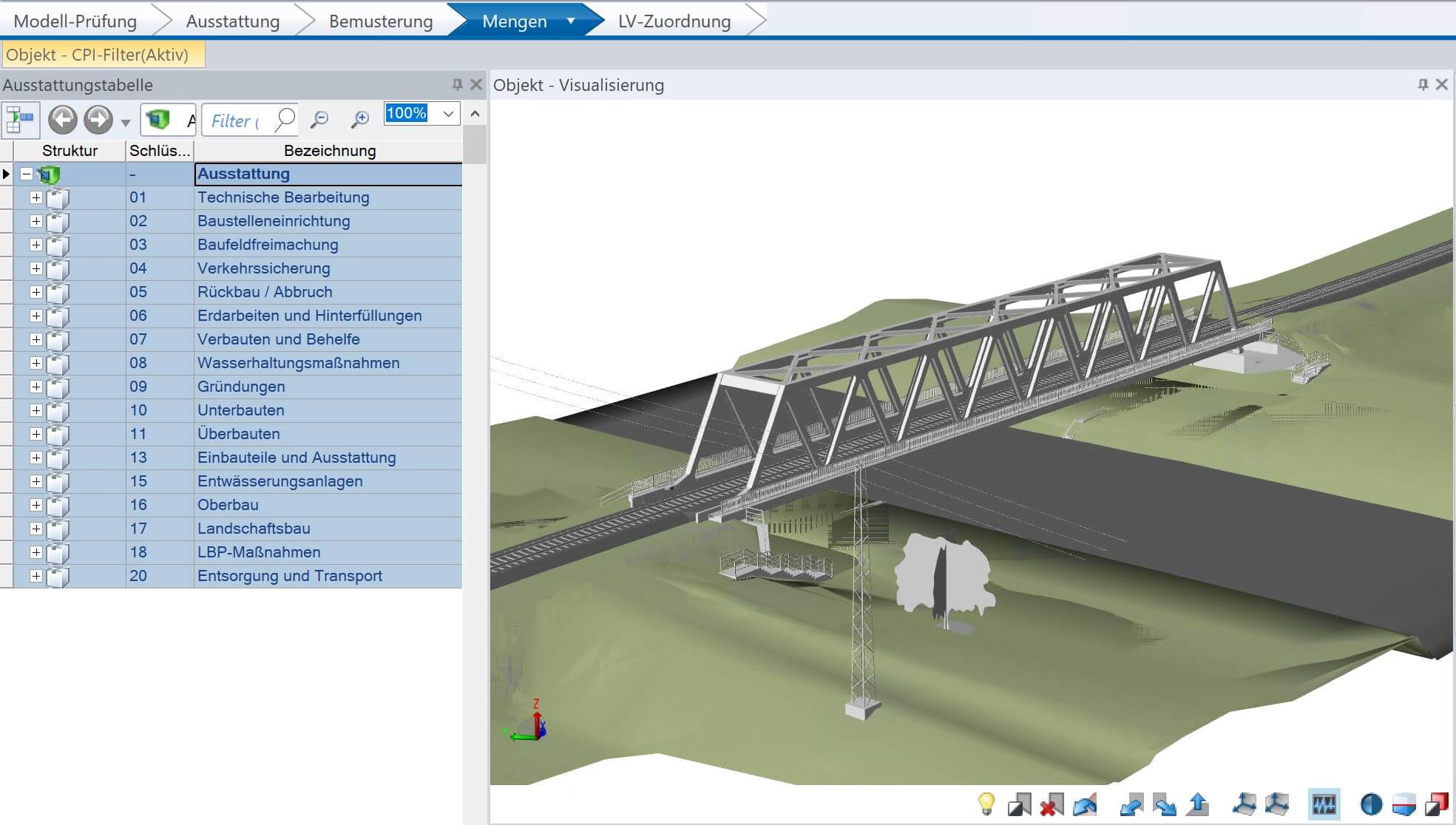 Im vorliegenden Beispiel wurde als Ersatzneubau einer bestehenden Eisenbahnbrücke eine Fachwerkbrücke gemäß Ril 804.9010 geplant. Der Level of Development (der Entwicklungsgrad) des Fachmodells wurde in jeder Leistungsphase entsprechend den Vorgaben der Auftraggebenden erhöht