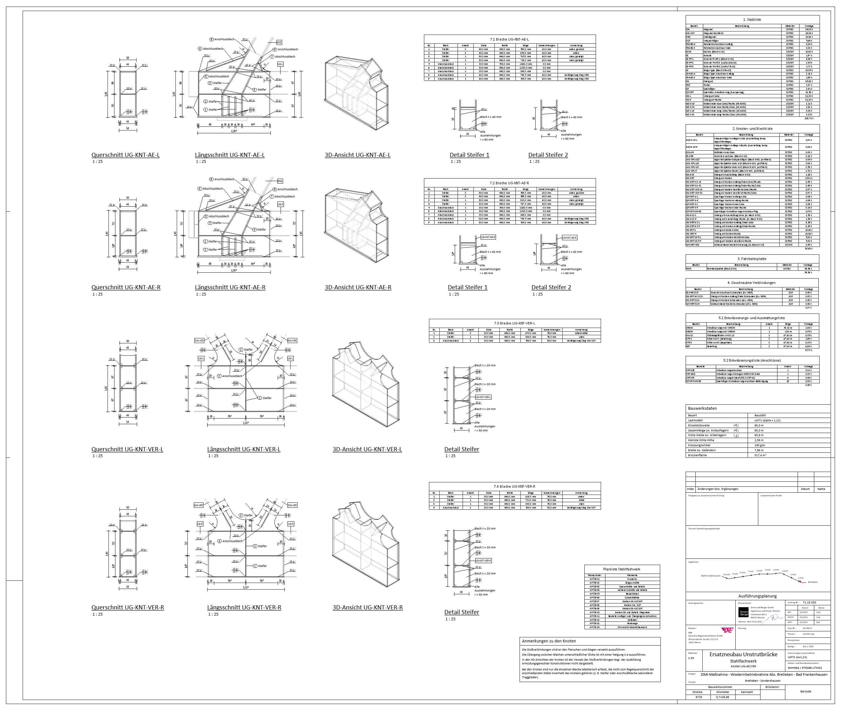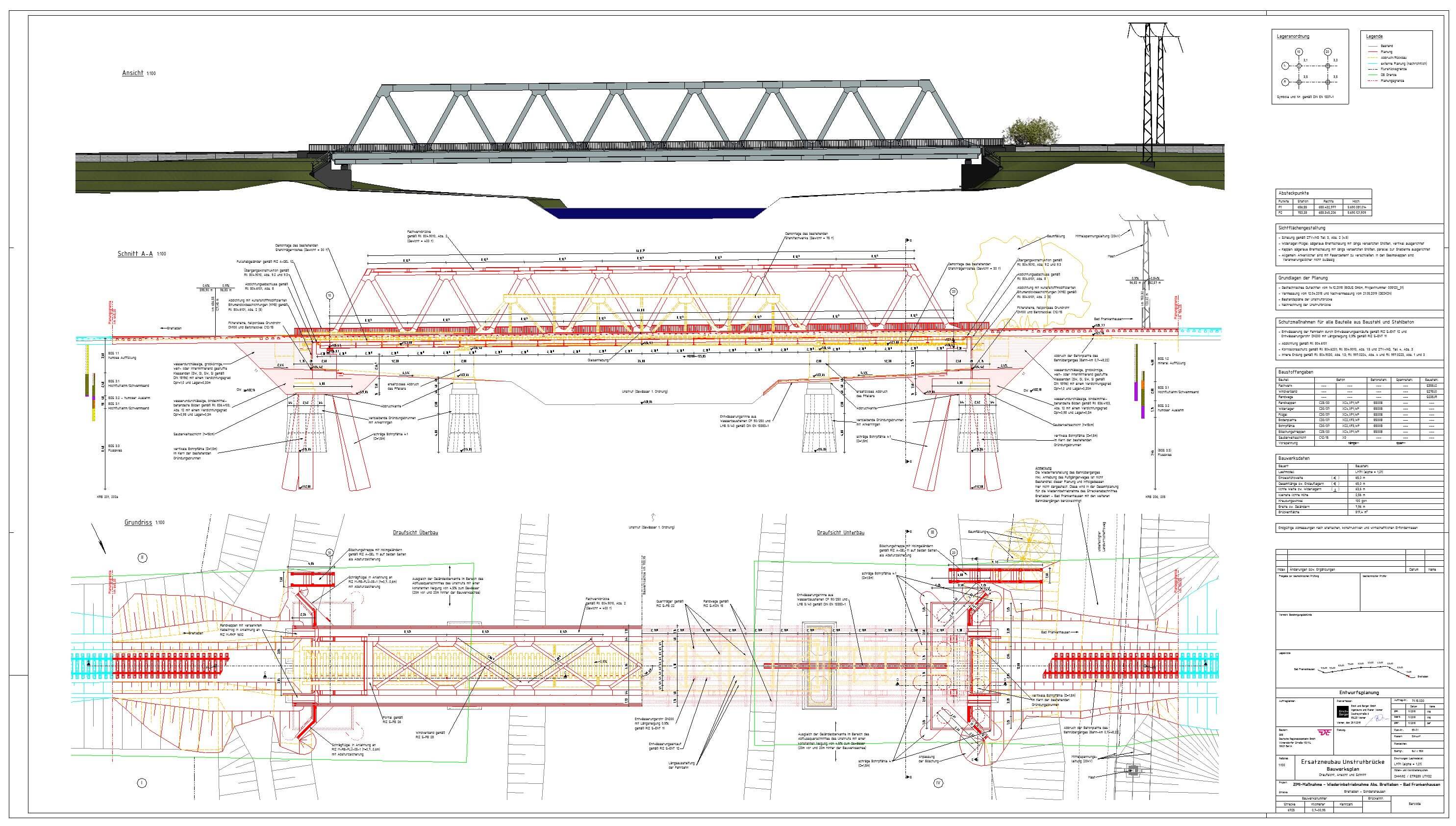 Die Bauwerks-, Ausführungs- und weitere Planunterlagen werden dabei direkt aus den Modellen abgeleitet. Es werden ausgewählte Grundrisse, Schnitte und Ansichten der Modelle in den Plänen dargestellt und die geplanten Bautätigkeiten (z. B. Abbruch, Bauzustand und Neubau) anhand der vorgegebenen Attribute (z. B. Bezeichnung, Material, Tonnage, etc.) automatisch beschriftet.
